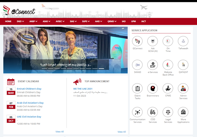 GCAA Employee will open eConnect and click on e-Services